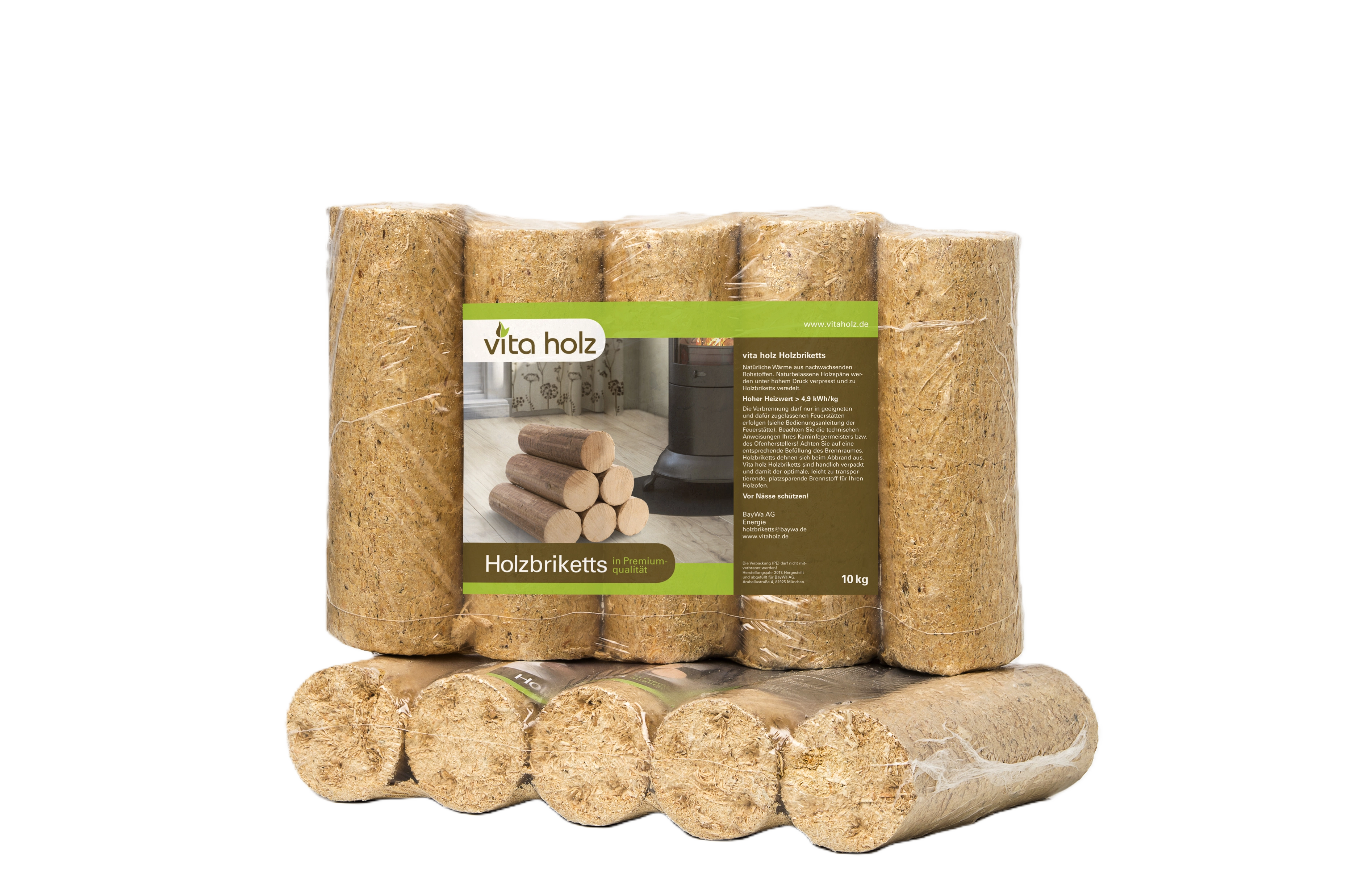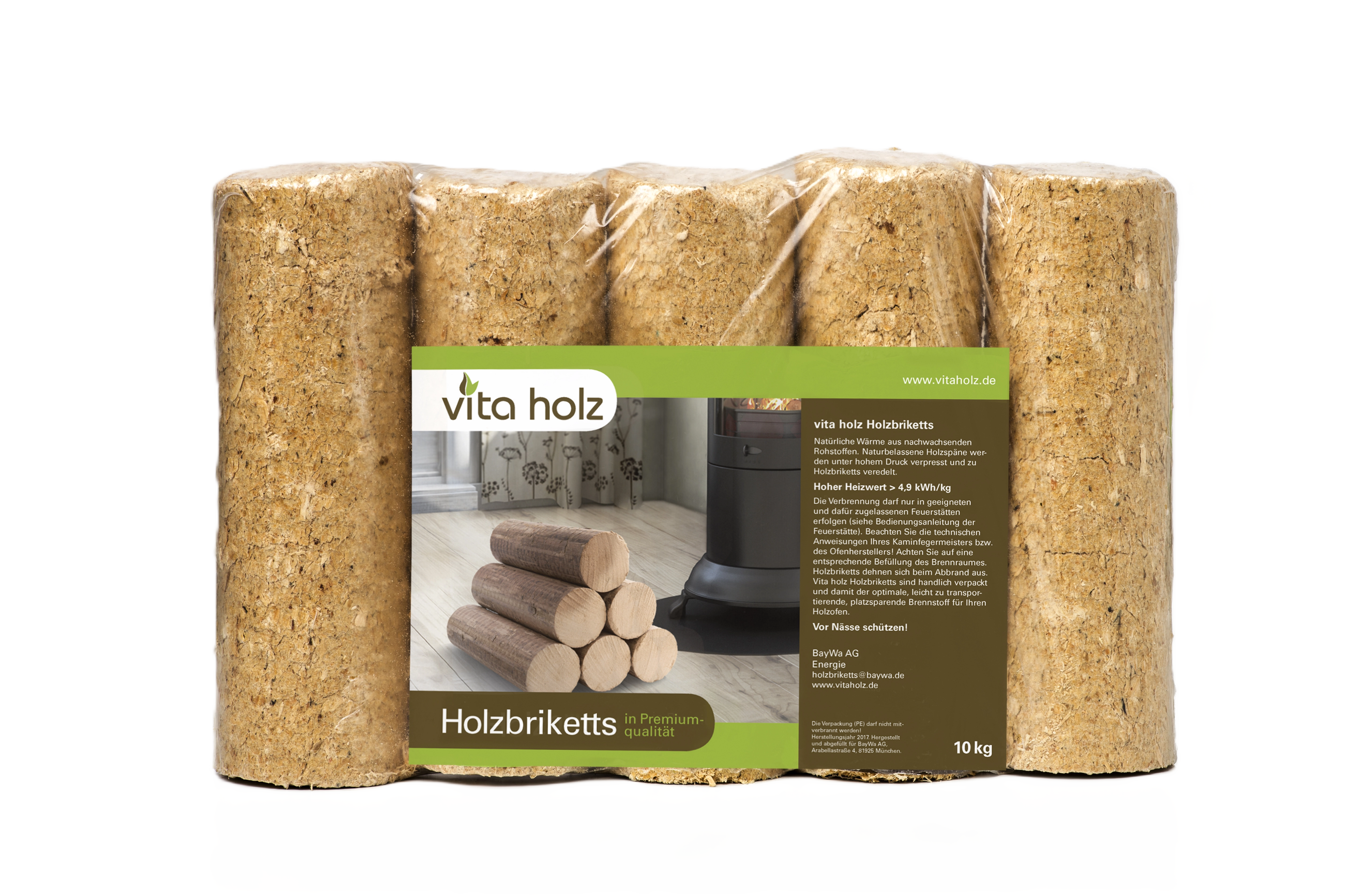 Vita holz Holzbriketts für Holzheizungen, Kachelöfen, Kamine, Herde sind ein hundertprozentiges Naturprodukt und frei von Rinde, Altholzanteilen, Zusatzstoffen und Bindemitteln.